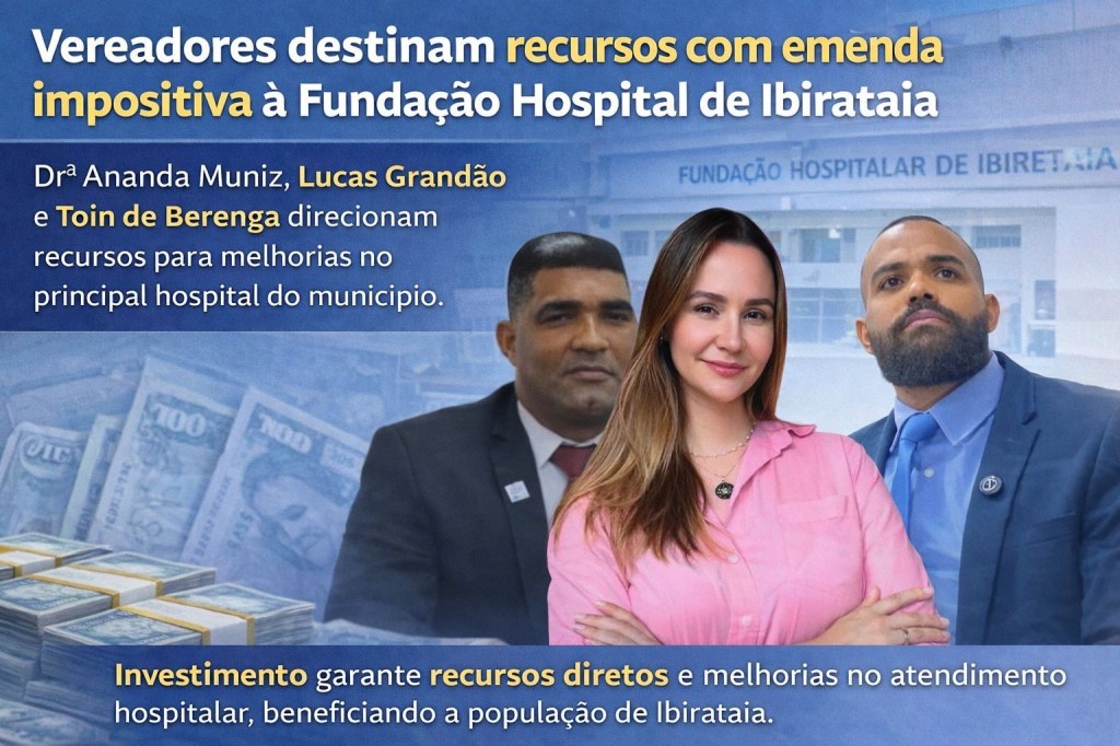 A destinação de emendas impositivas à área da saúde tem se tornado um importante instrumento de fortalecimento do atendimento à população. Em Ibirataia, os vereadores Ananda Muniz, Lucas Grandão e Toin de Berenga demonstraram compromisso com a comunidade ao direcionarem recursos à Fundação Hospital de Ibirataia, instituição essencial para o atendimento médico do município.