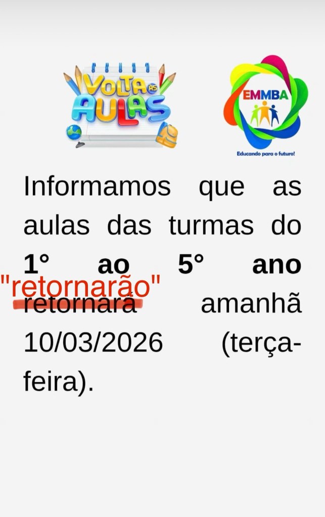 Chama atenção que o card utilizado tem um grosseiro erro ortográfico. Uma forma lamentável de começo de atividade letiva.